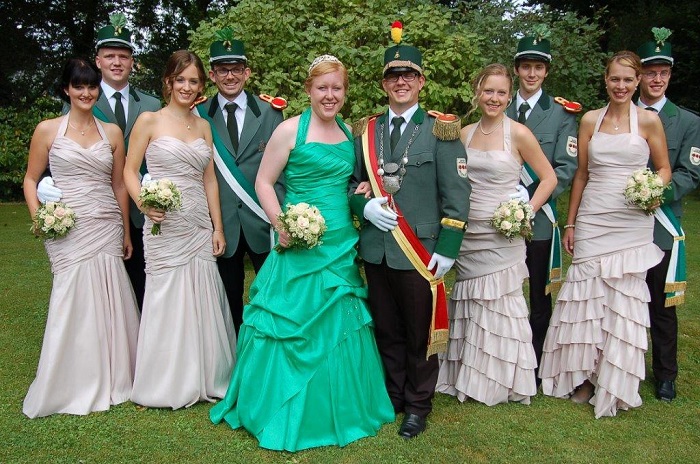 Das Königschießen zog sich wiederum zäh hin, um dann völlig überraschend einen gezielten Königsschuss zu erleben. Adam Marley nahm freudestrahlend die Glückwünsche der Festbesucher entgegen und gestaltete mit seiner Königin Janine Brandt ein gelungenes Schützenfest. Höhepunkt beim Schützenfrühstück war der Besuch königlicher Gäste aus seinem Heimatland England.